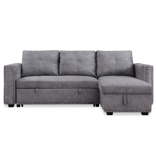 Yocada 91*64.5*35.5" Reversible Sleeper Sectional Storage Sofa Bed Pull-out,Corner sofa-bed with storage,3 seat both left handed and right handed,Nailheaded