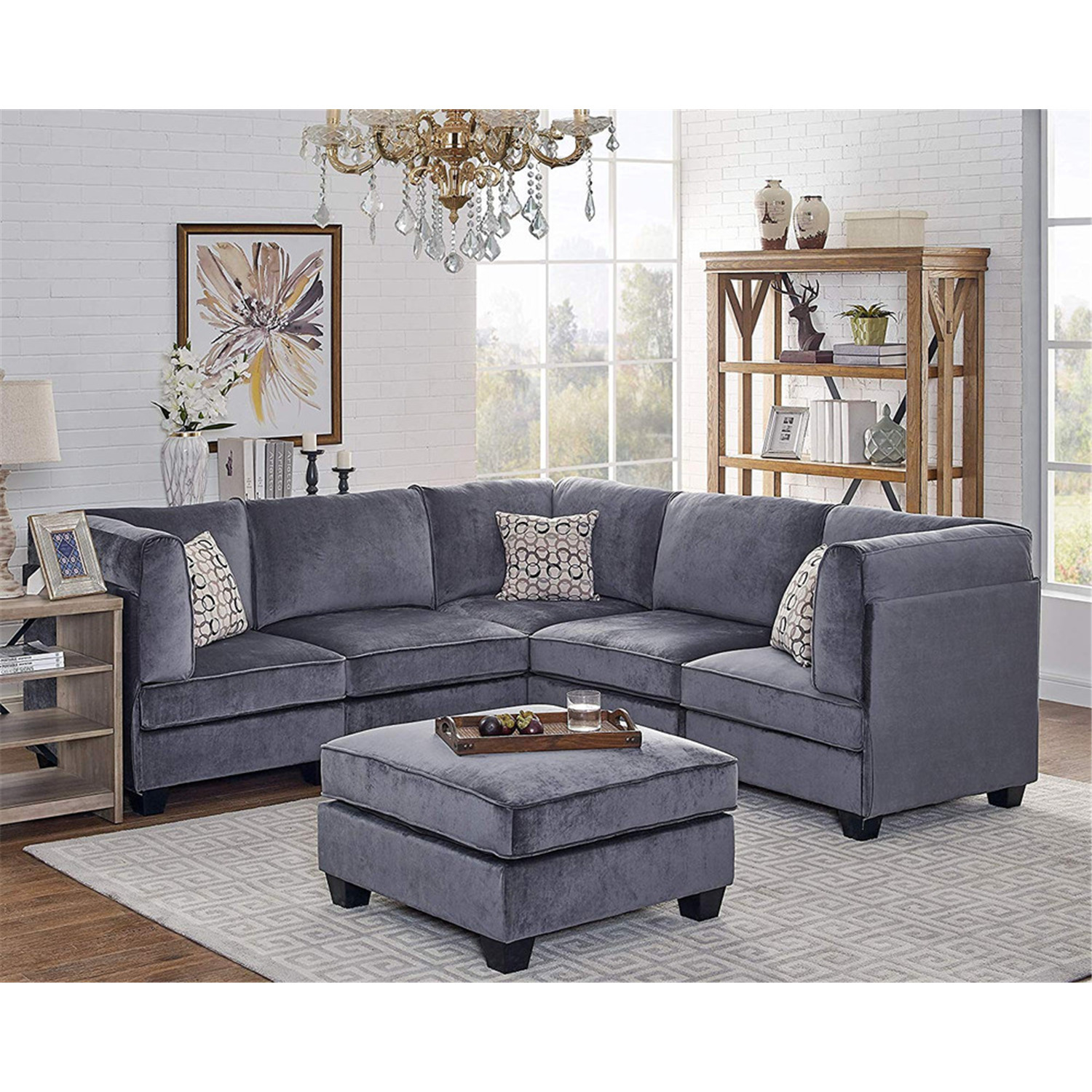 Homestock Rococo Romance Gray Velvet 6Pc Modular Sectional Sofa
