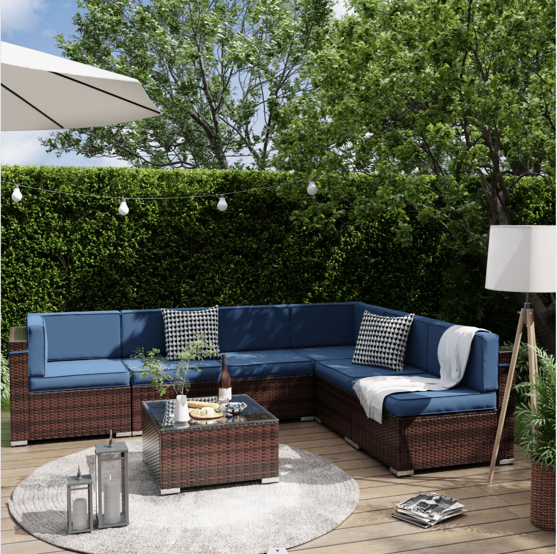 Poteban Patio Furniture Sets, Modular Rattan Outdoor Patio Sectional Furniture Sofa Set, Wicker Patio Conversation Set for Backyard,7PCS