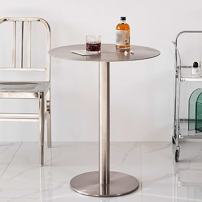 Small Narrow Side Table,Stainless Steel Bar Table End Table for Small Spaces,Sofa Beside Table Dining Kitchen Desk,Bistro Pub Table for Cocktail,Accent Table (Size:40x40x95cm)