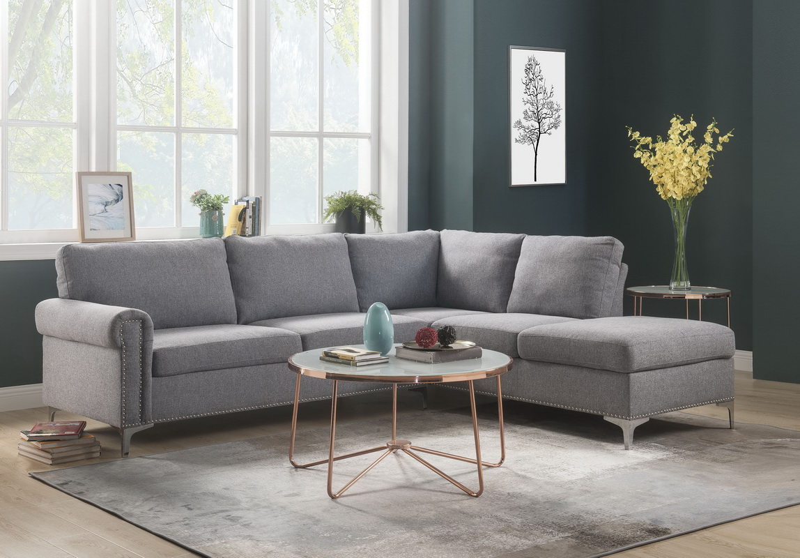 ACME Melvyn Sectional Sofa in Gray Fabric 52755