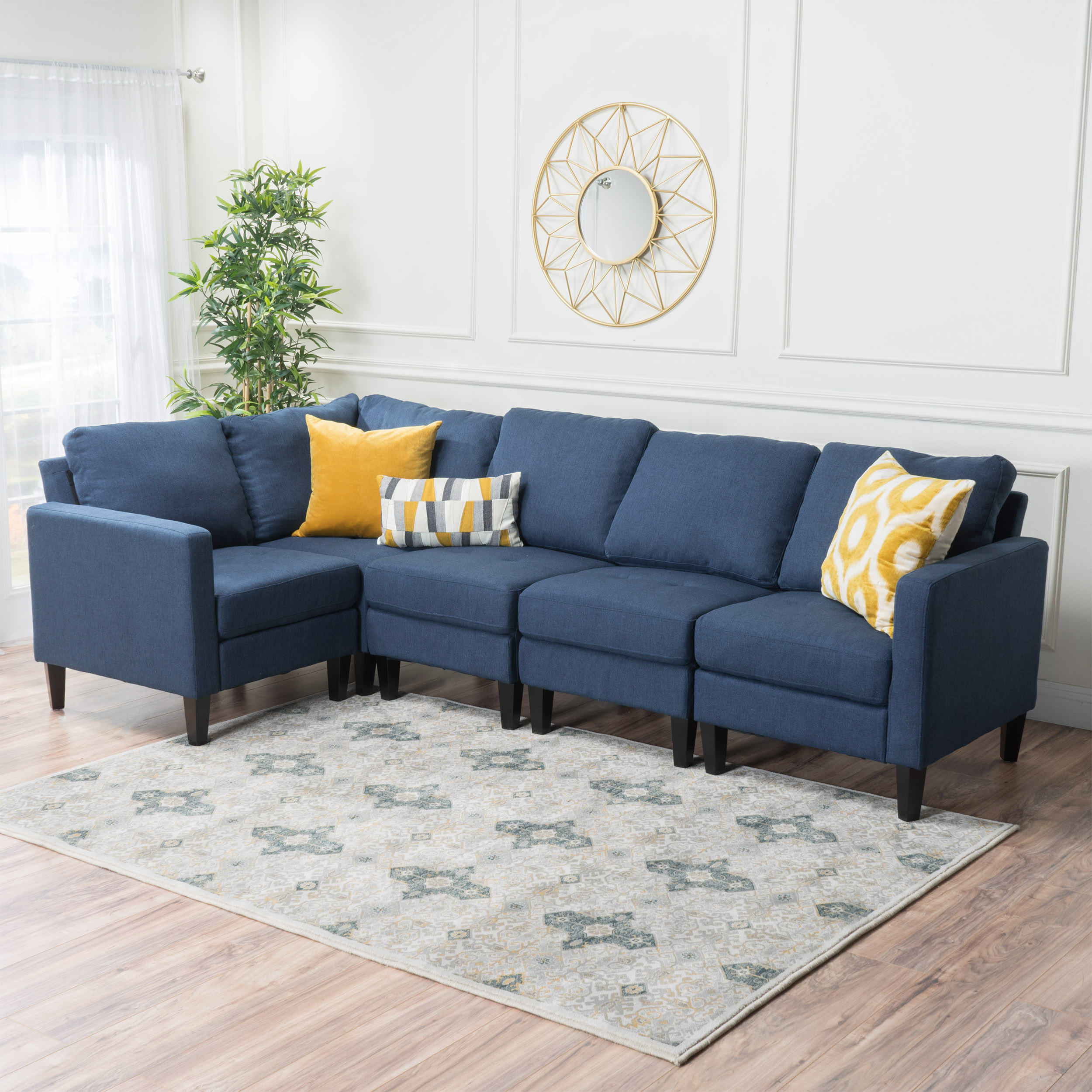 Noble House Indoor Contemporary Fabric Sectional Sofa, Dark Blue