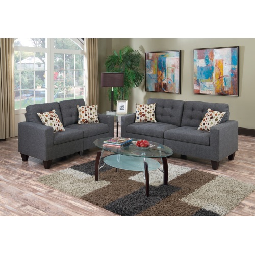 Living Room Furniture 2pc Sofa Set Blue Grey Polyfiber Tufted Sofa Loveseat W Pillows Cushion Couch Solid Pine Hs00F6901-Id-Ahd
