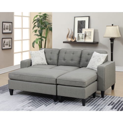 Reversible 3pc Sectional Sofa Set Black Tufted Polyfiber Wood Legs Chaise Sofa Ottoman Pillows Cushion Couch B01149071