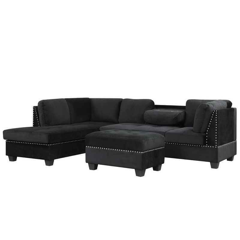104.5" Reversible Sectional Sofa Space Saving with Storage Ottoman Rivet Ornament L-Shape Couch for Small or Large Space Dorm Apartment, Black