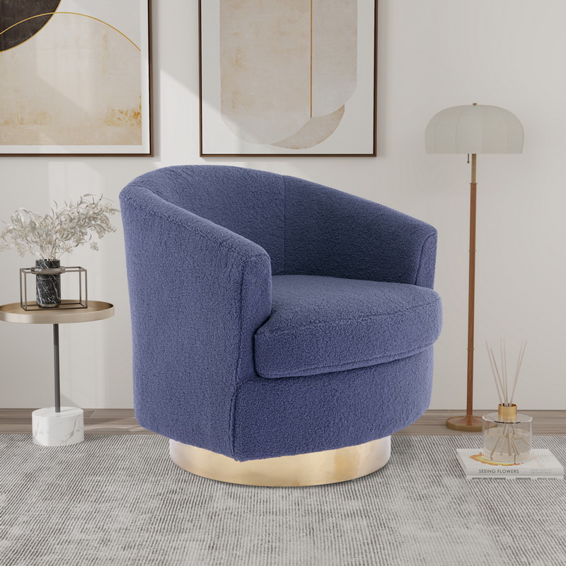 30.7"W Boucle Swivel Accent Barrel Chair Comfy Sofa with Gold Stainless Steel Base for Living Room, 360 Degree Club Arm Chair for Nursery Bedroom Living Room Lounge Hotel (Ivory Boucle)