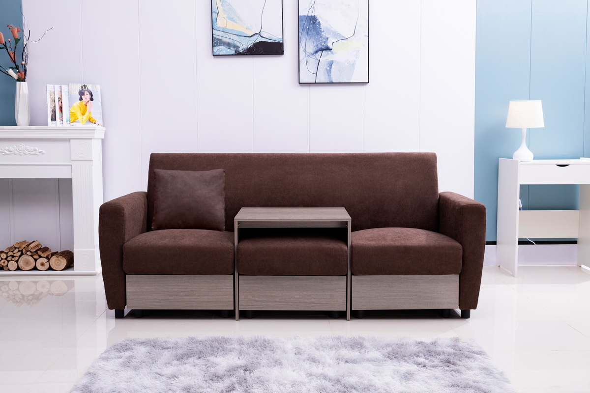 Double Armrests with Coffee Table and Drawers 77.9" Gray Chenille Living Room Apartment Studio Sofa