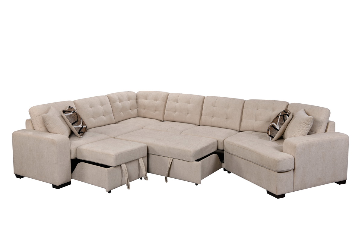 149" Oversized Sectional Large Upholstered U-Shape Sectional Sofa, Extra Wide Chaise Lounge Couch for Home, Bedroom, Apartment, Dorm, Office, Beige