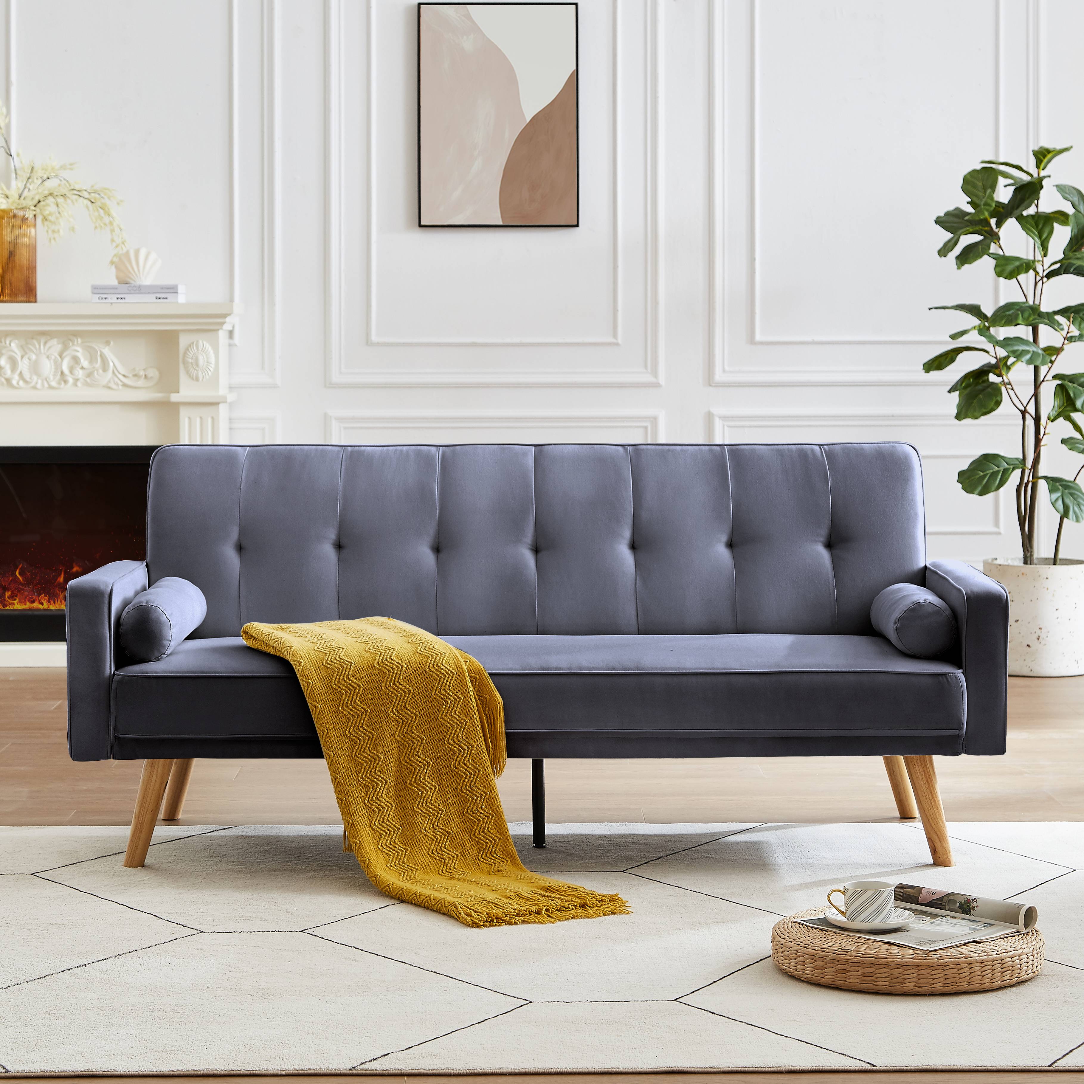 uhomepro Futon Sofa Bed with 2 Bolster Pillows, Convertible Sofa and Couch for Living Room, Gray