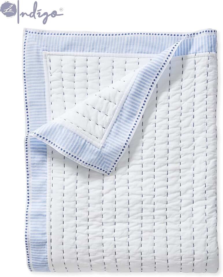 Pure Cotton Light Blue Stripes Printed Light Weight Warm Texture Kantha Quilt/Coverlet/Bedspread for Bed, Sofa Set Living Room Travelling (King Size 108x108 White and Light Blue)