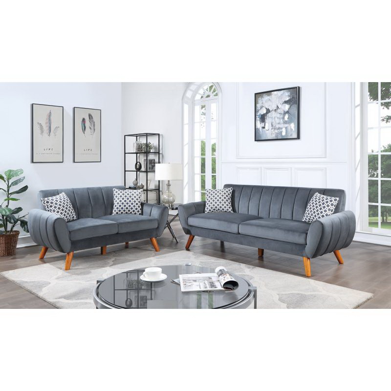 Sofia Gray Velvet Modern Chic Sofa Couch B06178278