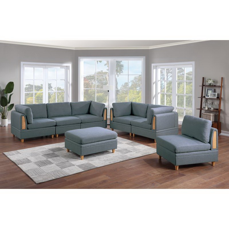 Contemporary Living Room Furniture 7pc Sectional Sofa Set Steel Dorris Fabric Couch 4x Wedges 2x Armless Chair and 1x Ottomans B011S00480