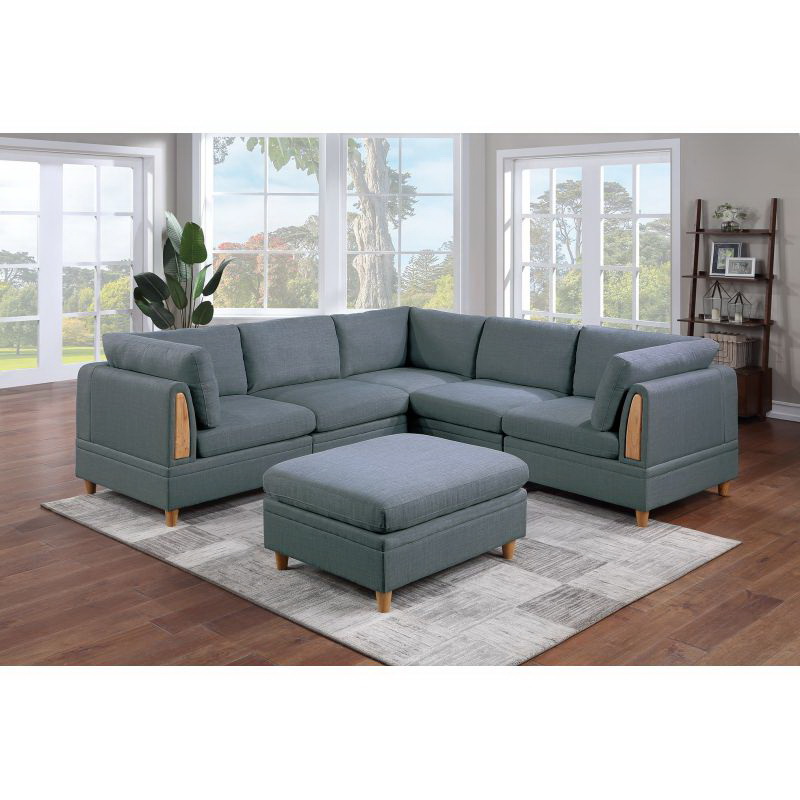 Contemporary Living Room Furniture 6pc Modular Sectional Sofa Set Steel Dorris Fabric Couch 3x Wedges 2x Armless Chair and 1x Ottomans B011S00481