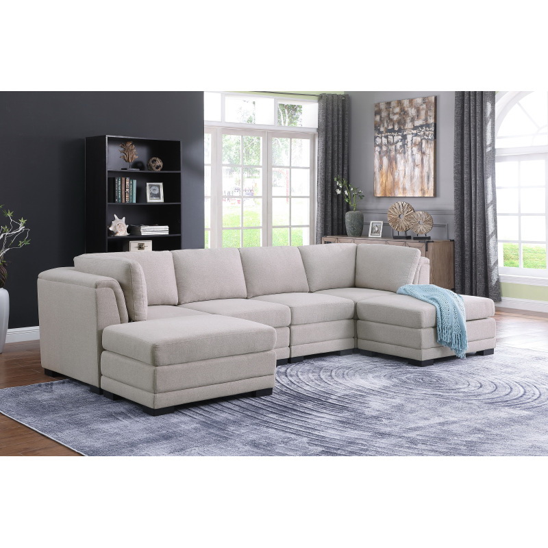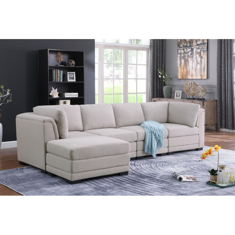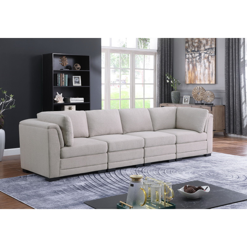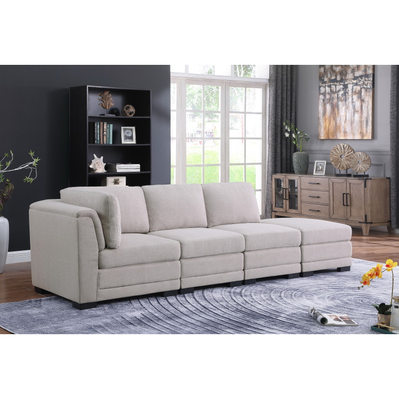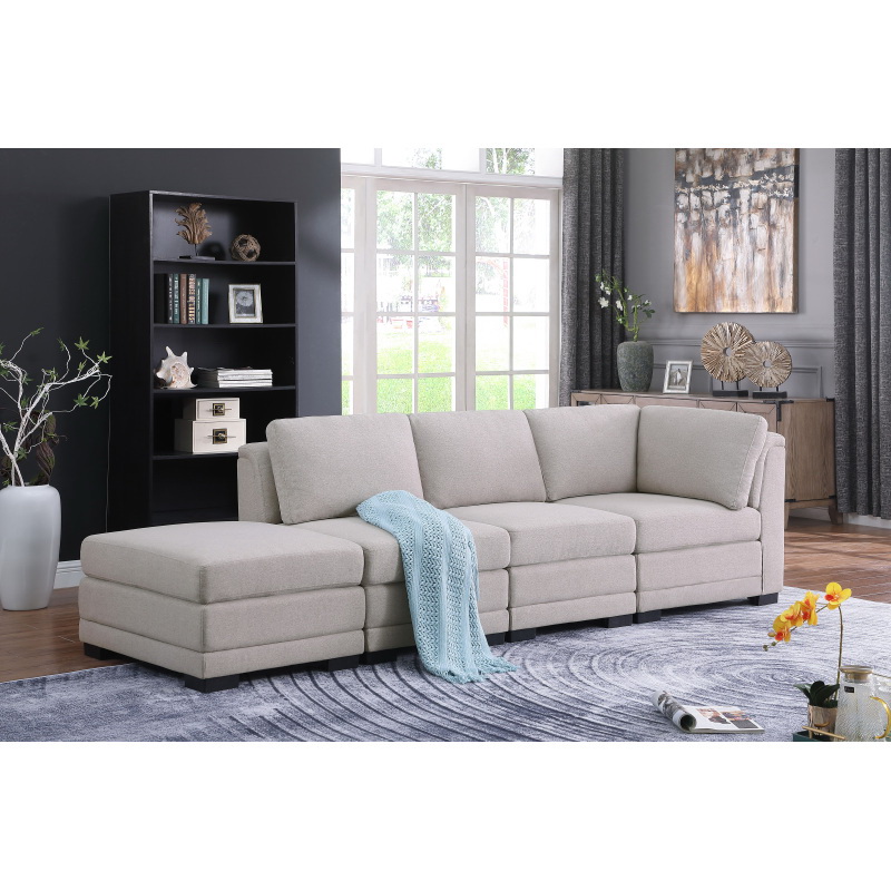 Kristin Light Gray Linen Fabric 4-Seater Modular Sofa B061S00227
