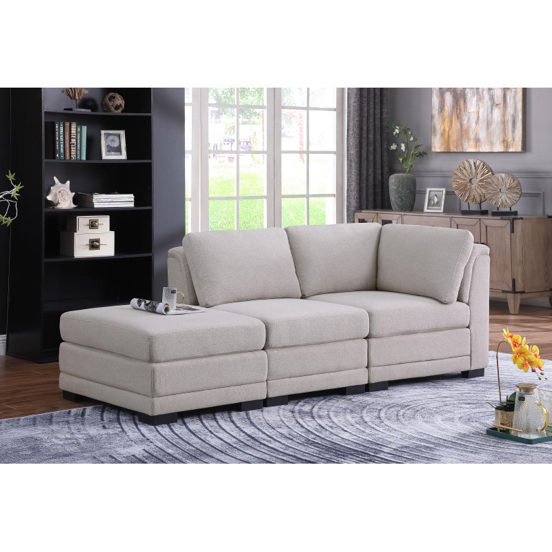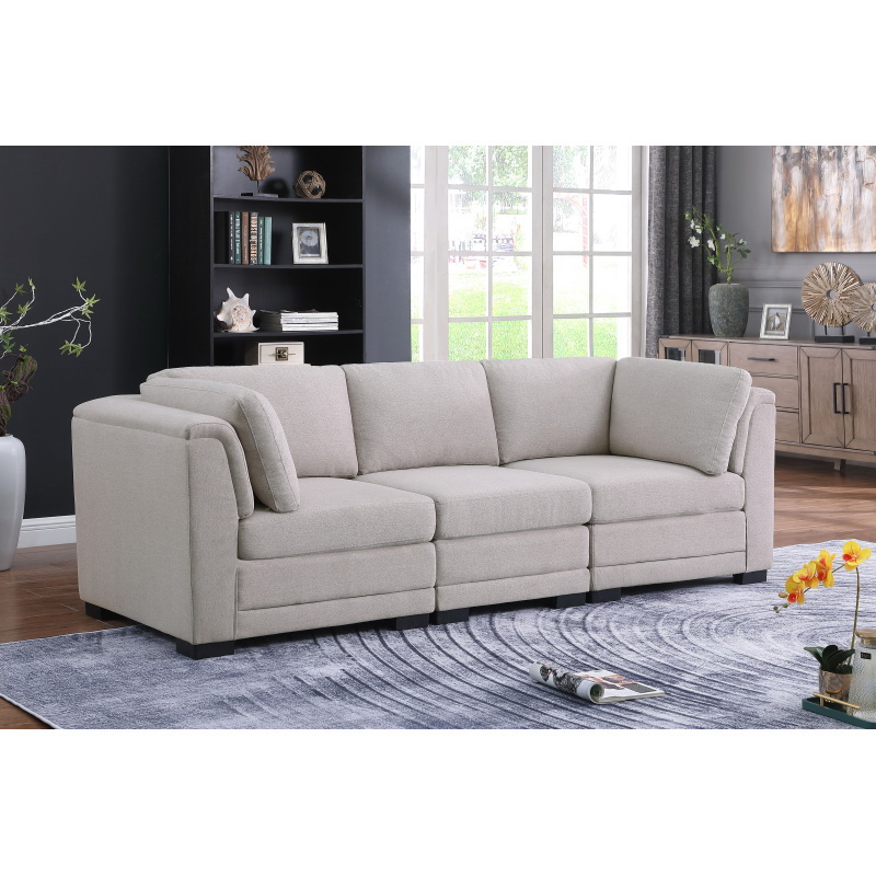Kristin Light Gray Linen Fabric 3-Seater Modular Sofa B061S00226