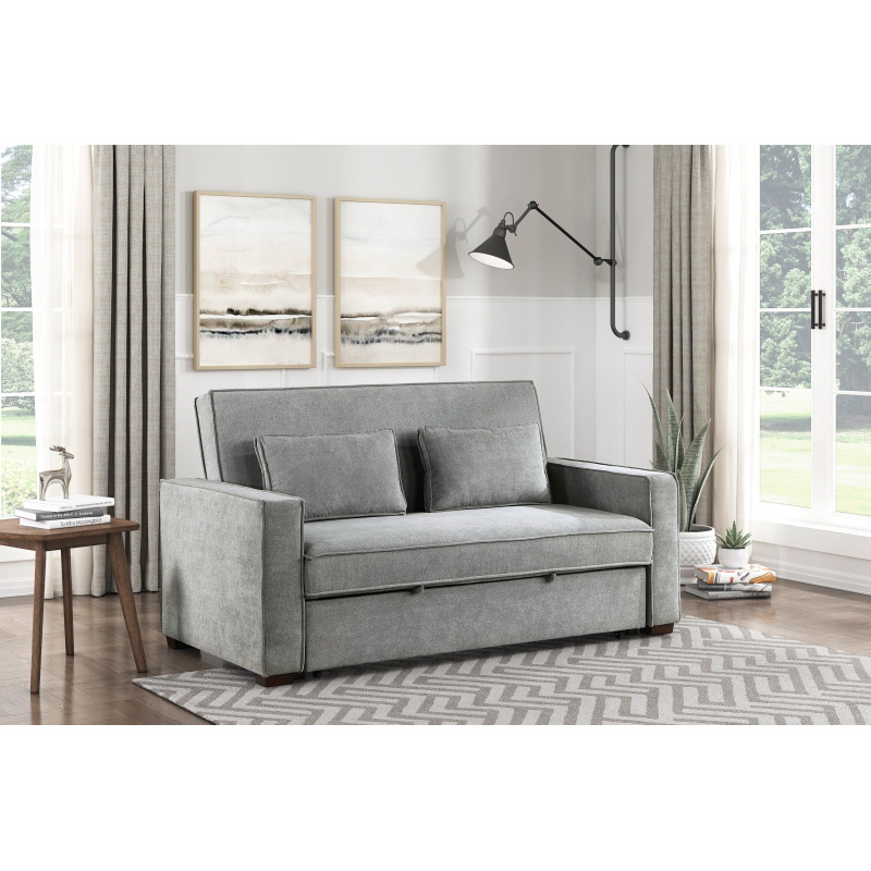 Modern Home Furniture Solid Wood Frame Sofa with Pull-Out Bed Gray Fabric Upholstered 2x Pillows Click-Clack Mechanism Back Living Rom Furniture B011125789