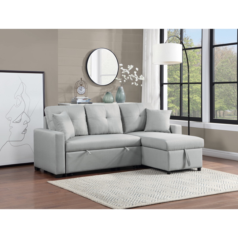 Francine Gray Linen Reversible Sleeper Sectional Sofa with Storage Chaise B061S00728