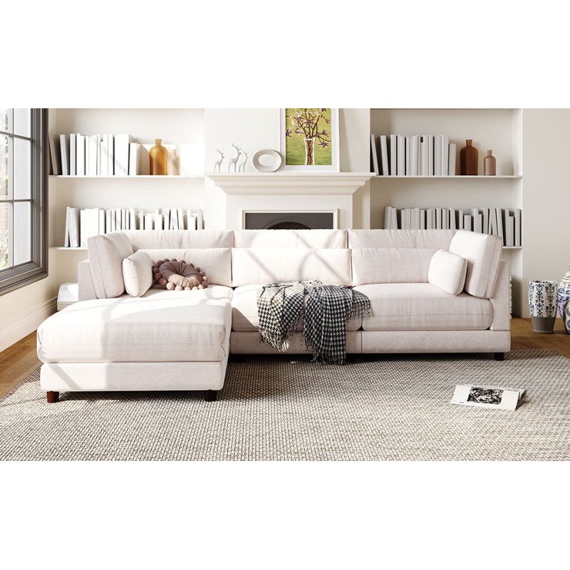 U_STYLE 2 Pieces L shaped Sofa with Removable Ottomans and comfortable waist pillows WY000328AAA