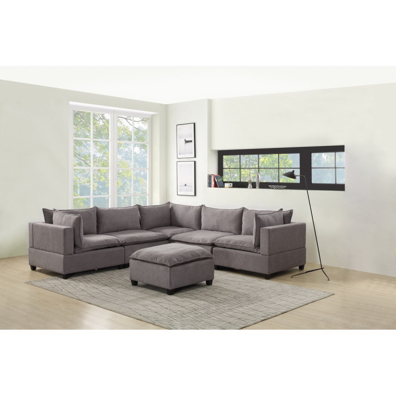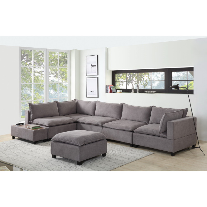 Madison Light Gray Fabric 6 Piece Modular Sectional Sofa with Ottoman B061S00125
