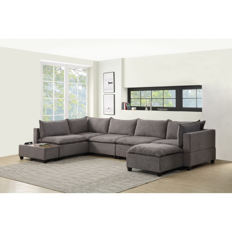 Madison Light Gray Fabric 6 Piece Modular Sectional Sofa with Ottoman and USB Storage Console Table B061S00111