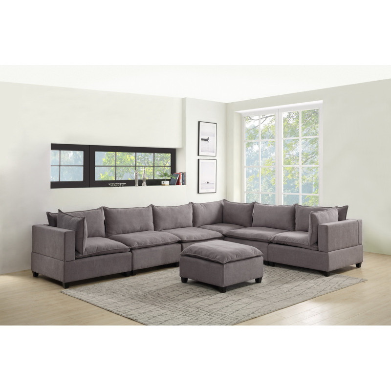 Madison Light Gray Fabric 7 Piece Modular Sectional Sofa with Ottoman B061S00126