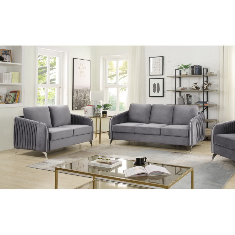 Damian Light Gray Velvet Fabric Sofa Loveseat Chair Living Room Set B061S00601
