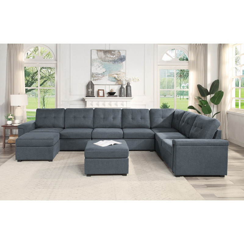 Isla Gray Woven Fabric 9-Seater Sectional Sofa with Ottomans B061S00187