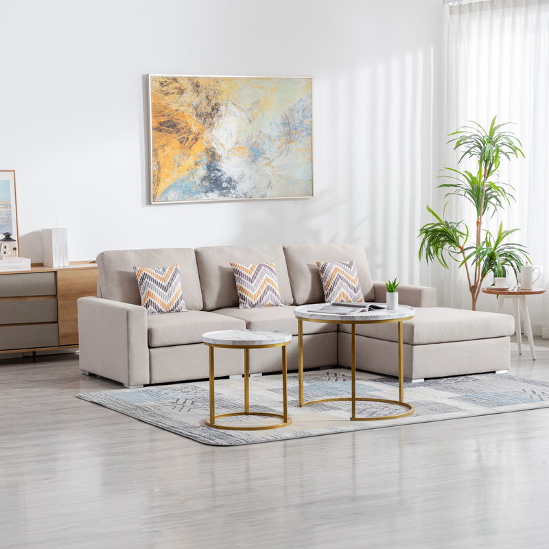 Nolan Beige Linen Fabric 4pc Reversible Sectional Sofa Chaise with Pillows and Interchangeable Legs B061S00489