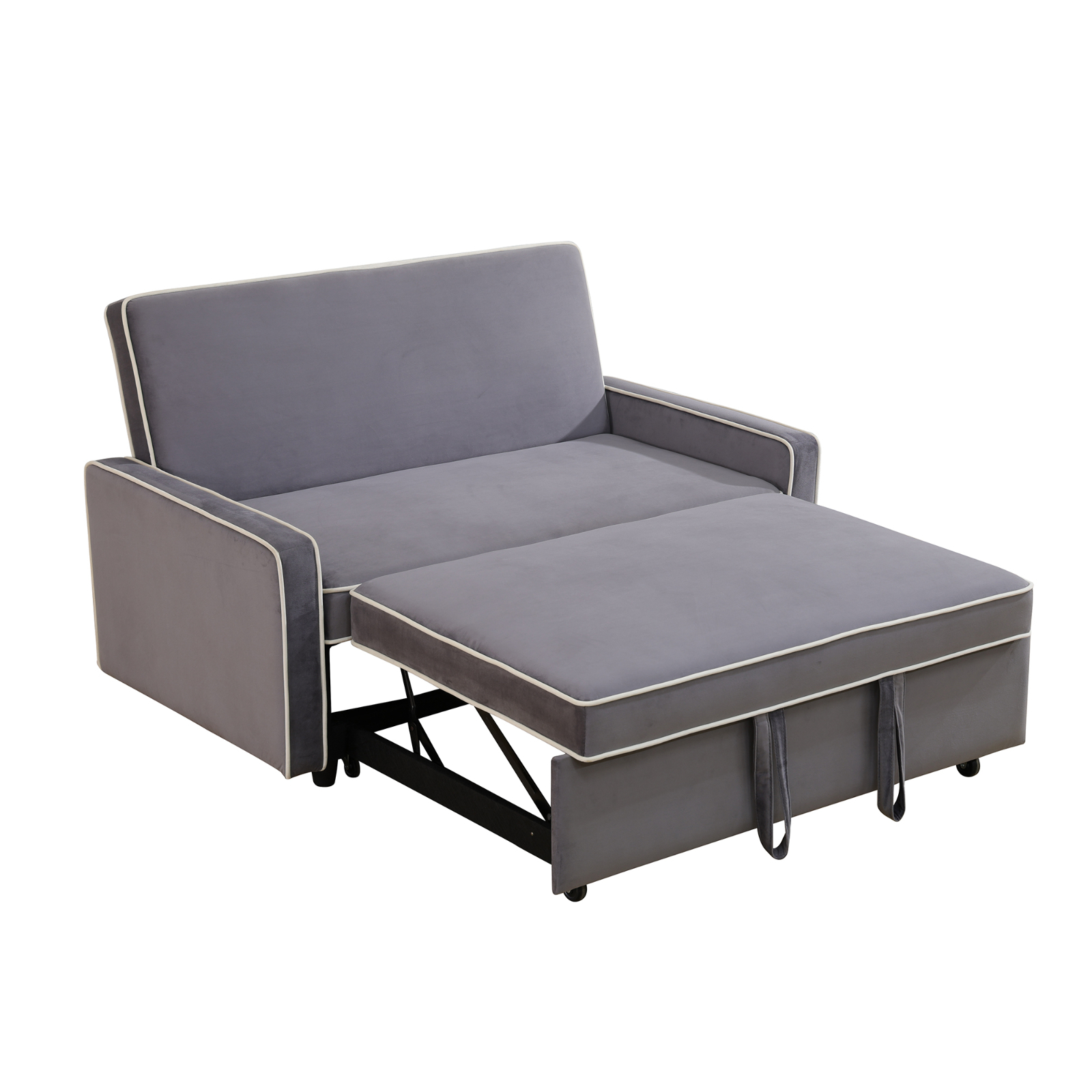Hombay Velvet Convertible Sofa Bed with Nailhead Trim, Folding Loveseat Sleeper Couch with Metal Legs for Living Room Bedroom