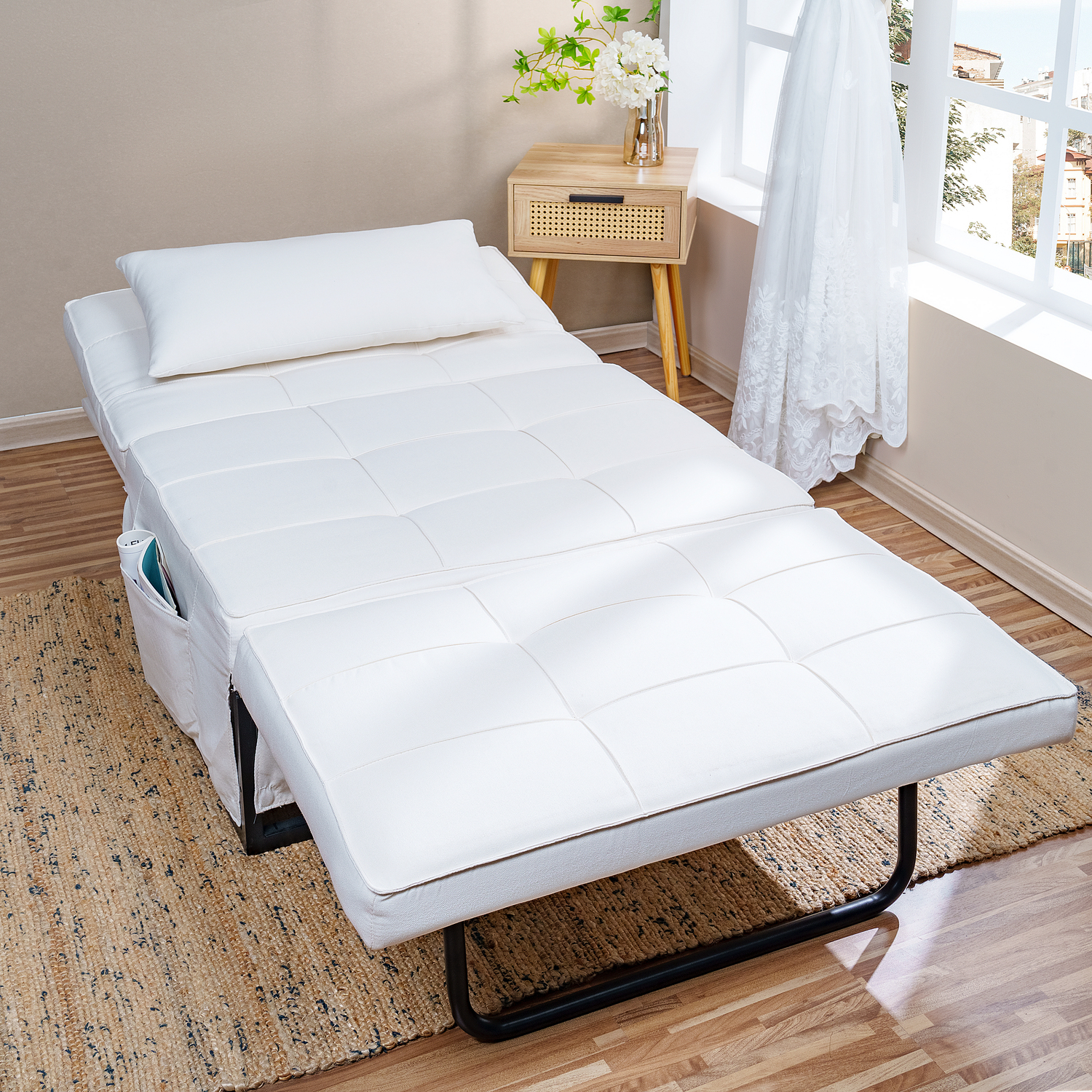 Sleeper Chair Bed, 4 In 1 Multi-Function Convertible Ottoman Bed, Breathable Linen Bed Chair, Convertible Sofa Bed with Adjustable Backrest, Modern Convertible Chair Bed Sleeper for Living Room, White