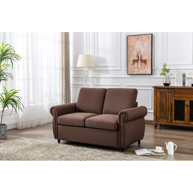 U_Style Stylish Sofa with Semilunar Arm, Rivet Detailing, and Solid Frame for Living Room