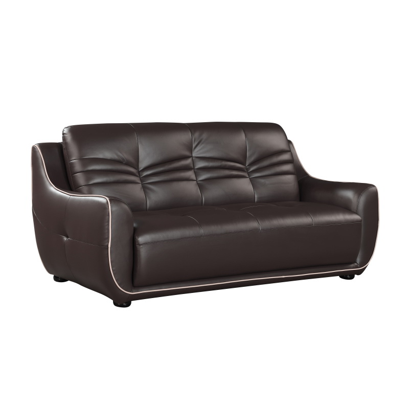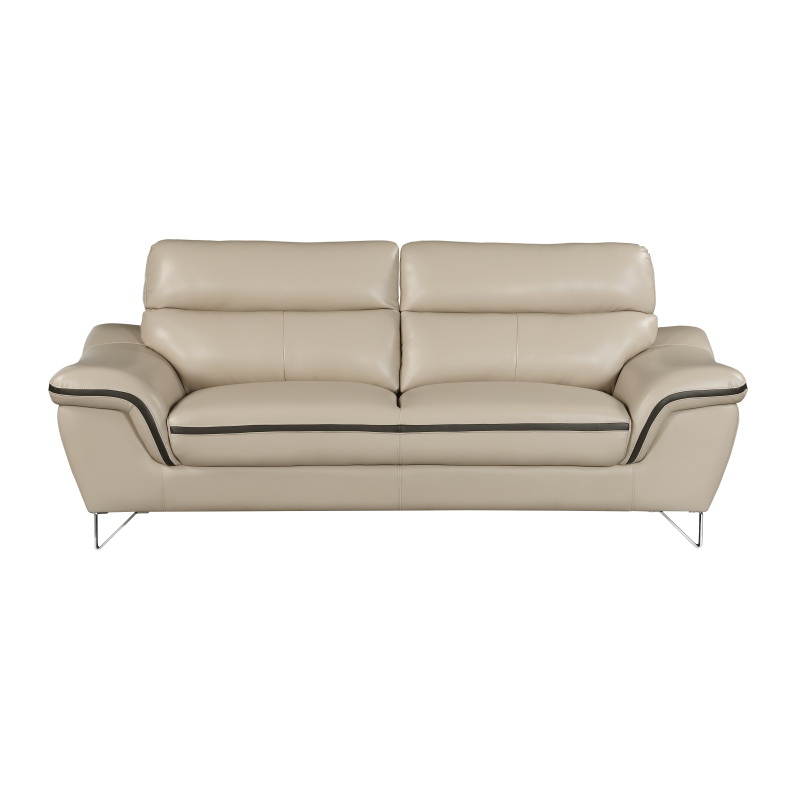 U-style Upholstered Country Style Sofa with Wooden Legs and Two Throw Pillows