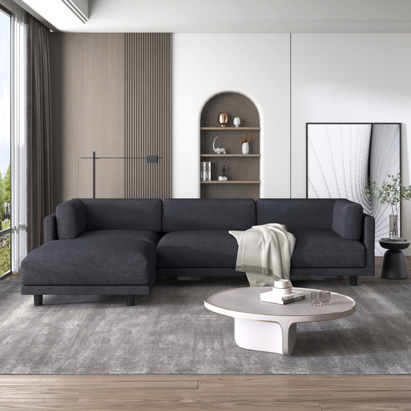 U_STYLE 3 Seat Sofa with Removable Back and Seat Cushions and 4 Comfortable Pillows
