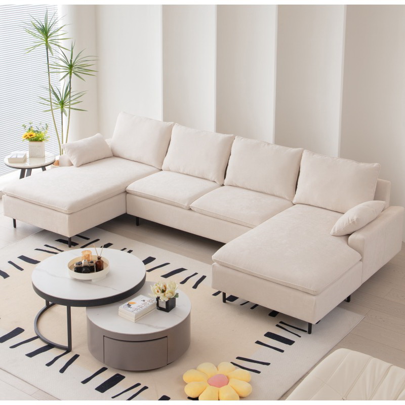 U-Shaped linen sectional sofa with double chaises,Beige W848S00015
