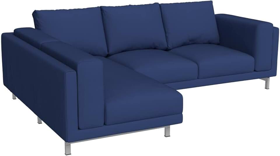 Slipcover Only! Heavy Duty Cotton Sofa Covers Compatible with IKEA Nockeby Sofa 3 Three Seat with Chaise Corner Sectional Slipcover (Right Longer Cotton Blue)