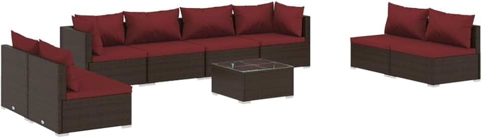 vidaXL 9 Piece Outdoor Patio Lounge Set with Cushions - Brown Poly Rattan Garden Furniture with Easy Assembly, Durable Material & Modular Design - Includes Corner Sofa, Middle Sofa & Coffee Table