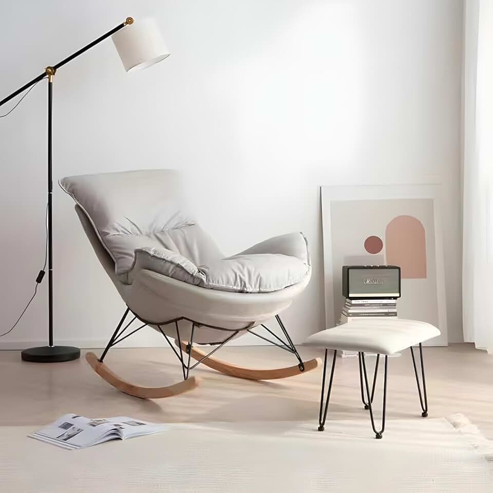 LITFAD Modern Rocking Chair Faux Leather Water Resistant Chair Balcony Lounge Sofa Living Room Chair - Rocking Chair with Ottomans Grey