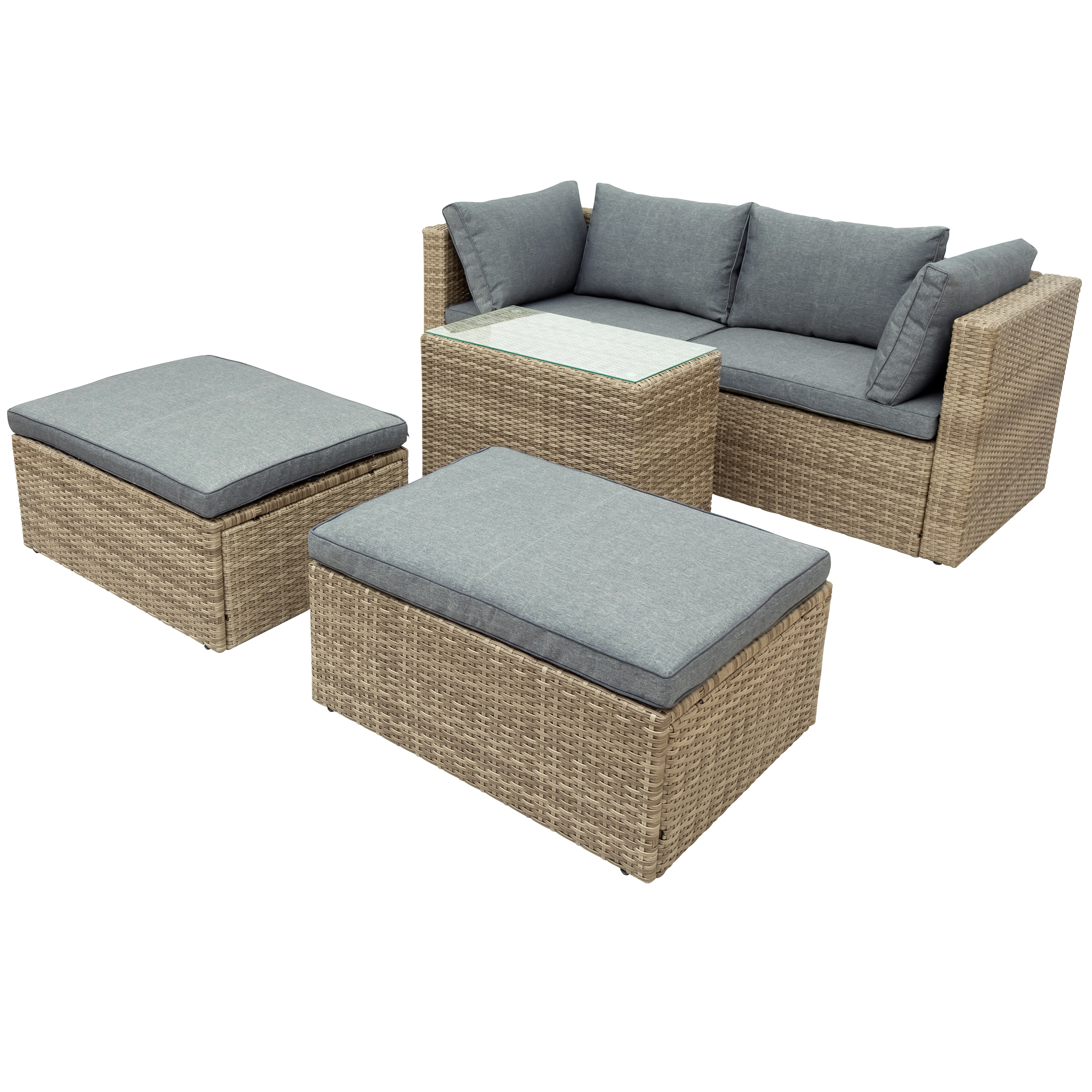 Outdoor Patio Sofa Set, Terrace Furniture Sectional Sofa With Ottomans And Cushions, Patio Wicker Rattan Conversation Sets, Gray