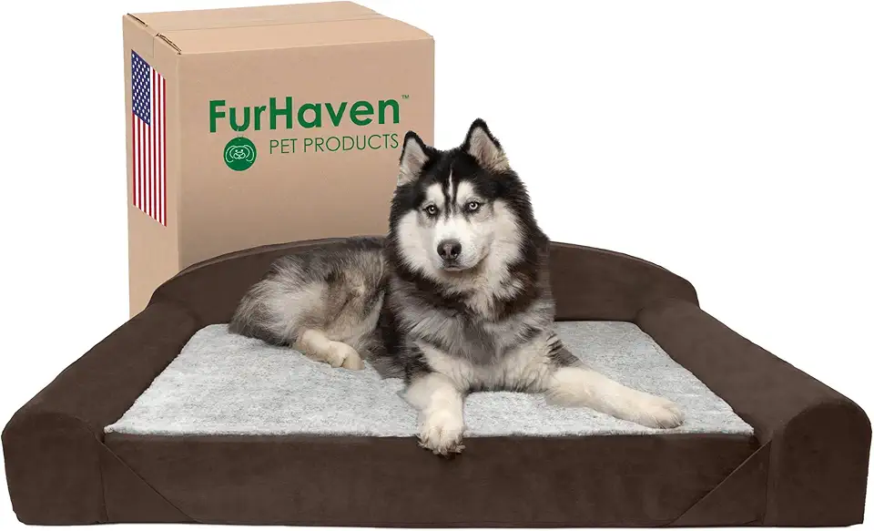 Furhaven Orthopedic Dog Bed for Large Dogs w/ Removable Washable Cover & Reversible Foam Cushion, For Dogs Up to 200 lbs - Luxury Edition Faux Fur & Suede Sofa - French Roast, Jumbo (X-Large)