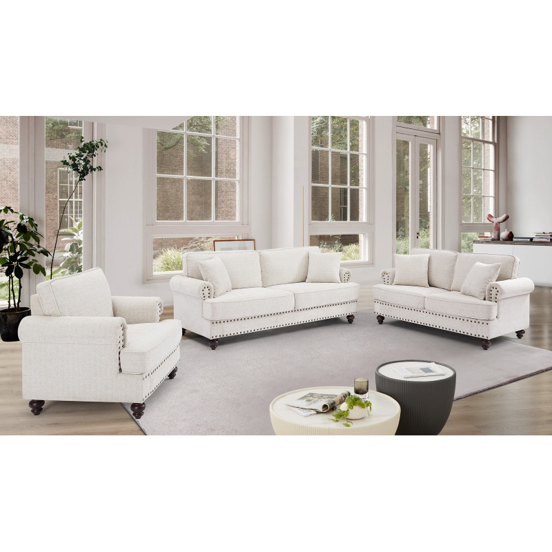 Living Room Furniture, Modern 3-Piece Including Three-Seater, Loveseat and Single Chair,Chenille modern Upholstered Sofa Set, White W1708S00026