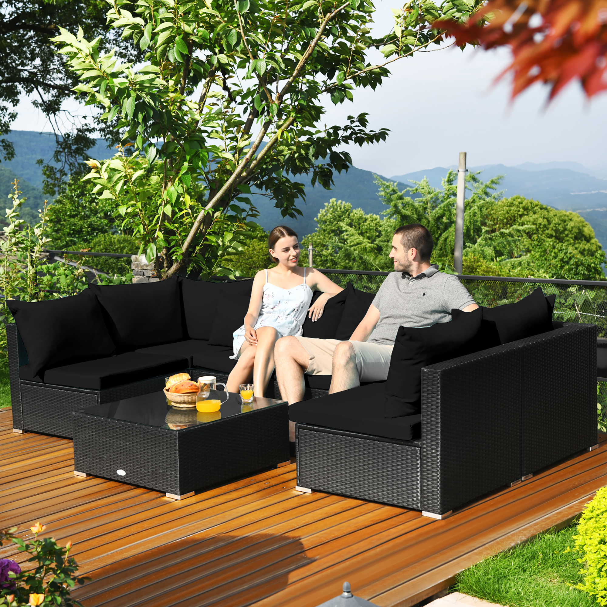Costway 7PCS Patio Rattan Sofa Set Sectional Conversation Furniture Set Garden Black