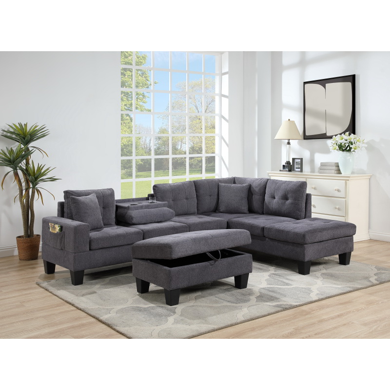 GREY Sectional Sofa Bed, L-shape Sofa Chaise Lounge with Ottoman Bench W588S00073