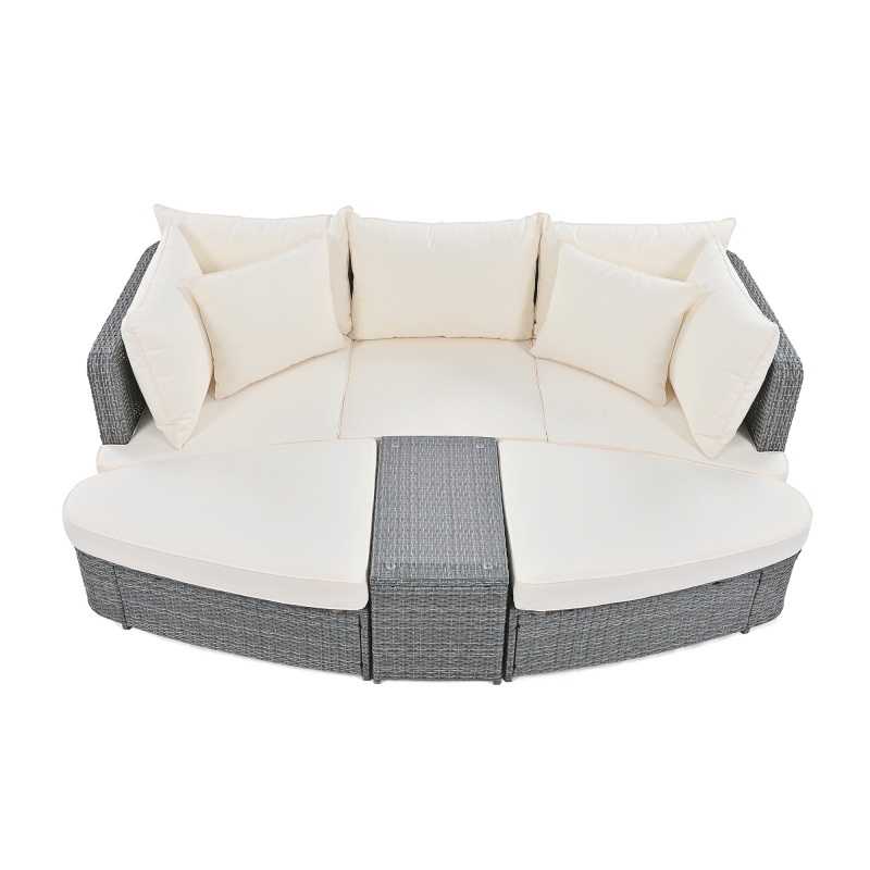 Patio Light Grey Sofa 4 Seat Couch Coffee Table Sofa Furniture Set with Rattan Wicker Outdoor W1828S00040