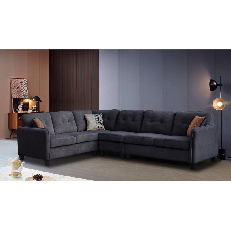 Archie Black Velvet 6-Seater Sectional Sofa B061S00780