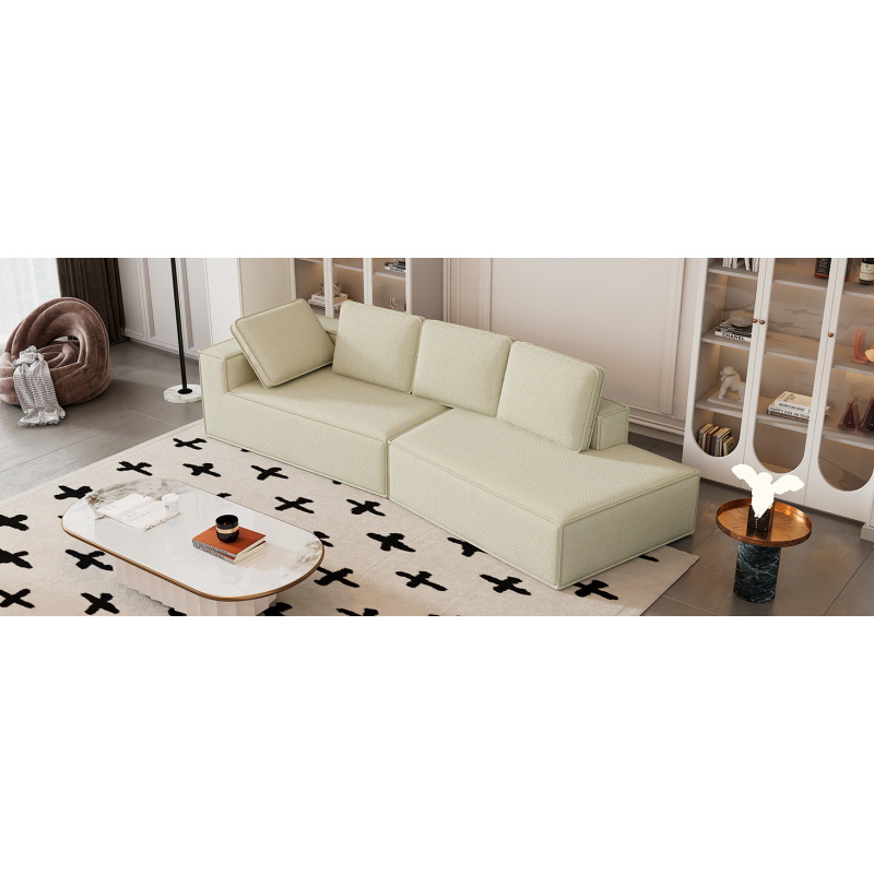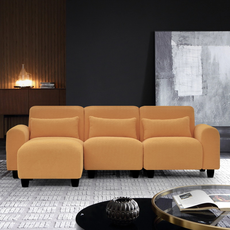 The 84.6-inch beige teddy fleece creative sofa can be assembled into a two-seater sofa plus a single couch with three waist pillows to perfectly stretch your waist for small apartment bedroom Spaces
