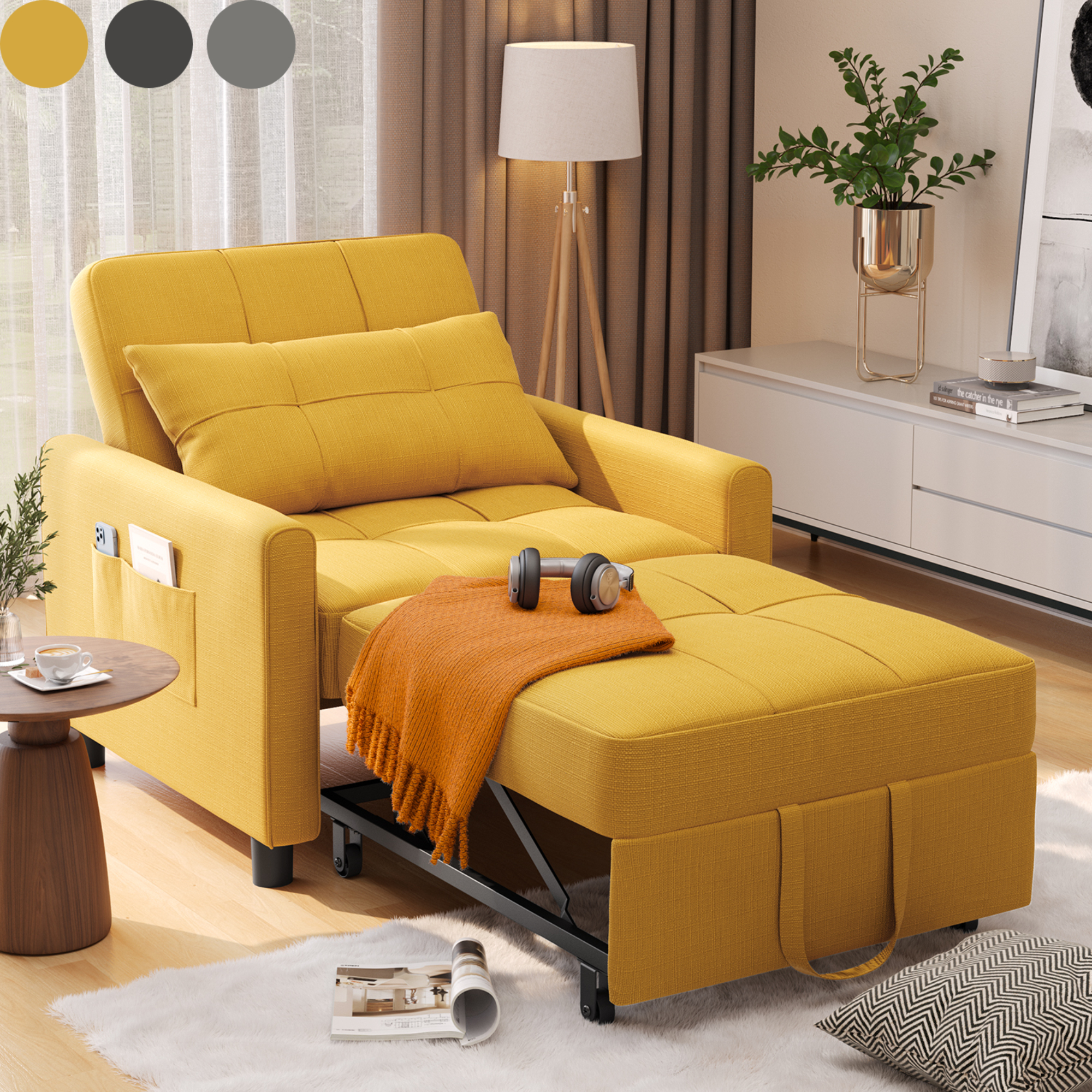 Chair Bed, Lofka Single Recliner Convertible Sofa Bed, 400lbs, Yellow