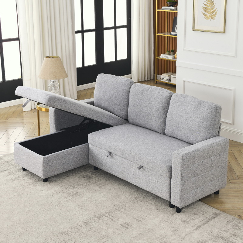 FX 78.8" Reversible Sleeper Combo Sofa with Pullout Bed, Comfortable Linen L-Shaped Combo Sofa Sofa Bed, Living Room Furniture Sets for Tight Spaces W1926S00006