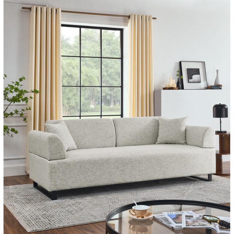 Linen Fabric 3 Seat Sofa with Two End Tables and Two Pillows, Removable Back and Armrest, Morden Style Upholstered 3-Seat Couch for Living Room W487139513