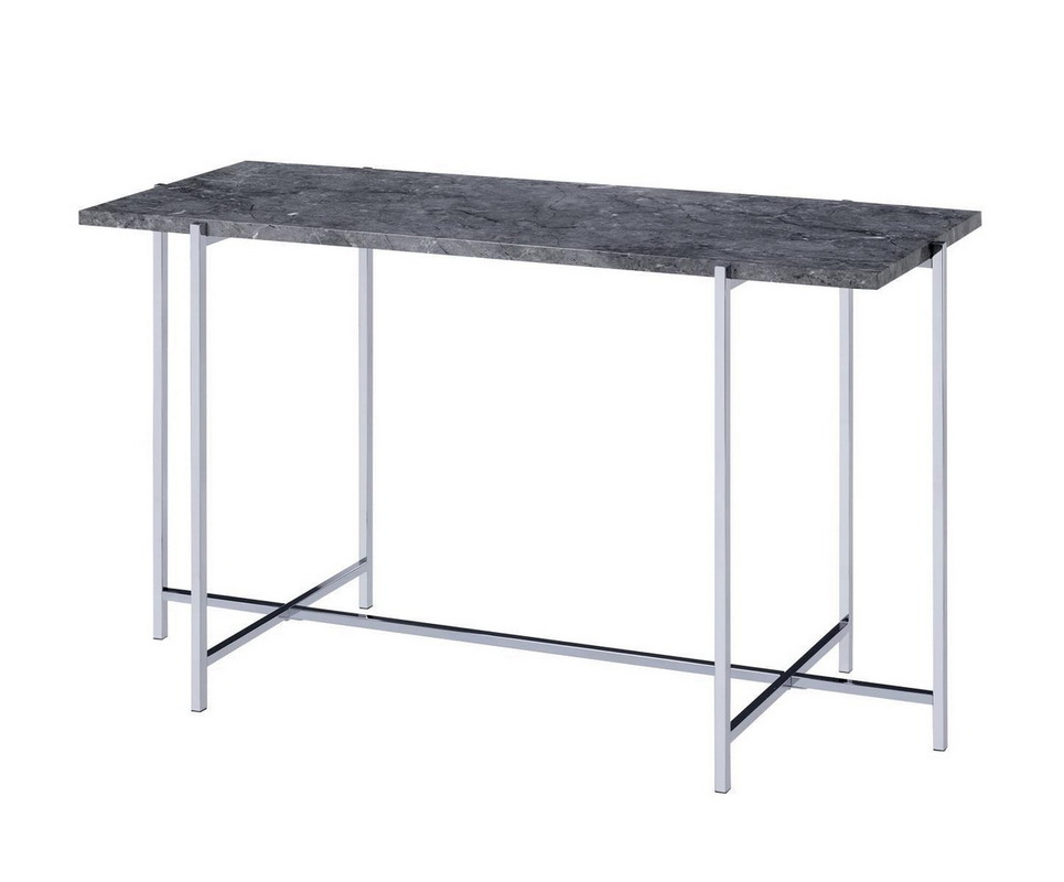 Benjara BM204502 Contemporary Marble Top Sofa Table with Trestle Base, Gray and Silver