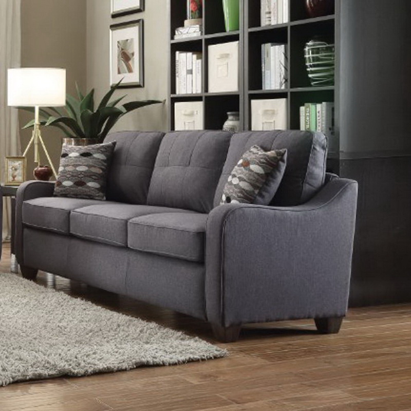 Benzara BM185580 Contemporary Linen Upholstered Wooden Sofa with Two Pillows, Gray